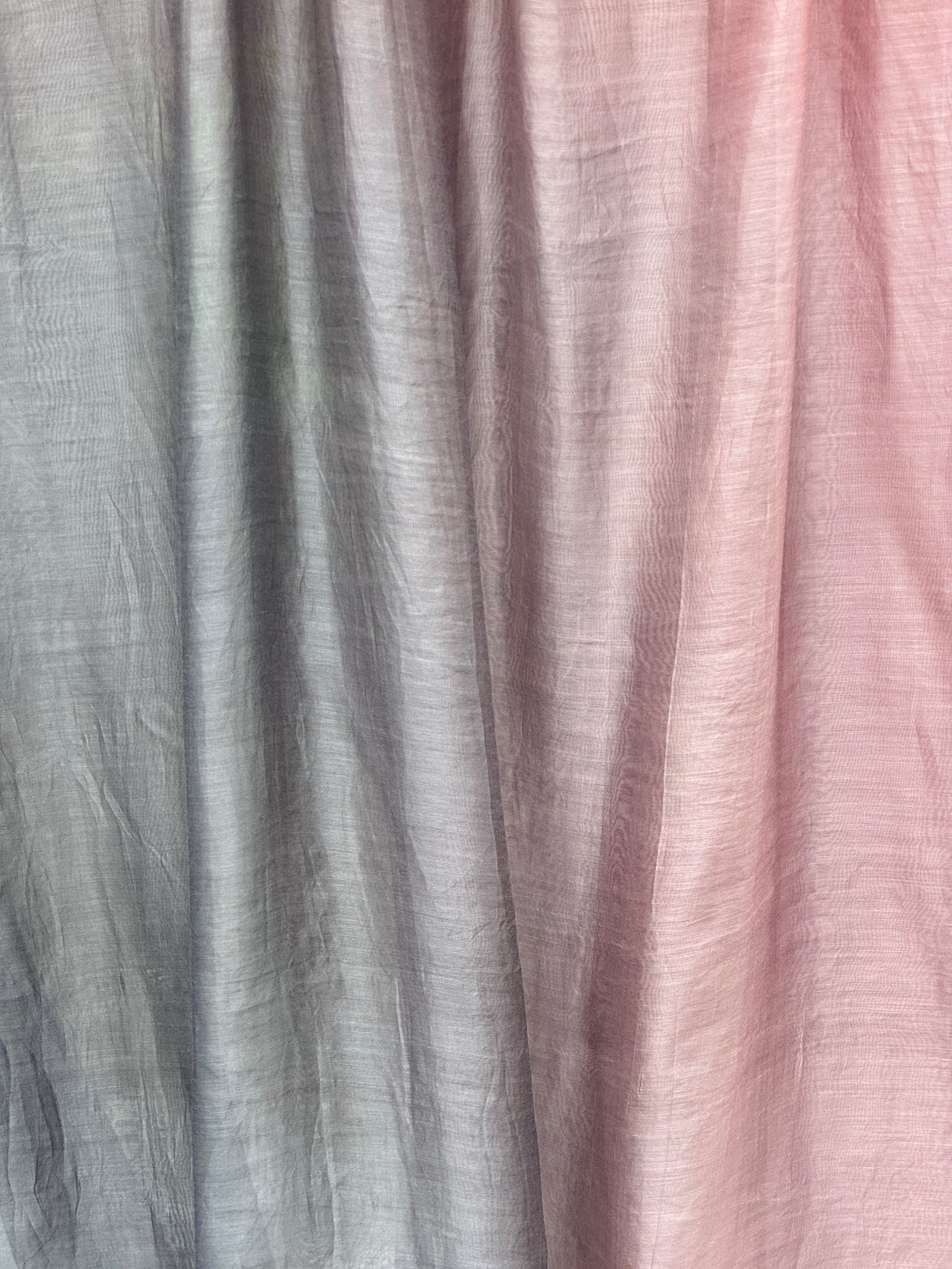 Experience the artistry of colors in motion with our signature ombré-dyed pure Banarasi Silk Chanderi fabrics. Seamlessly blending hues—now fading, then deepening—like a melody painted in light, each piece offers endless possibilities for soulful ensembles.