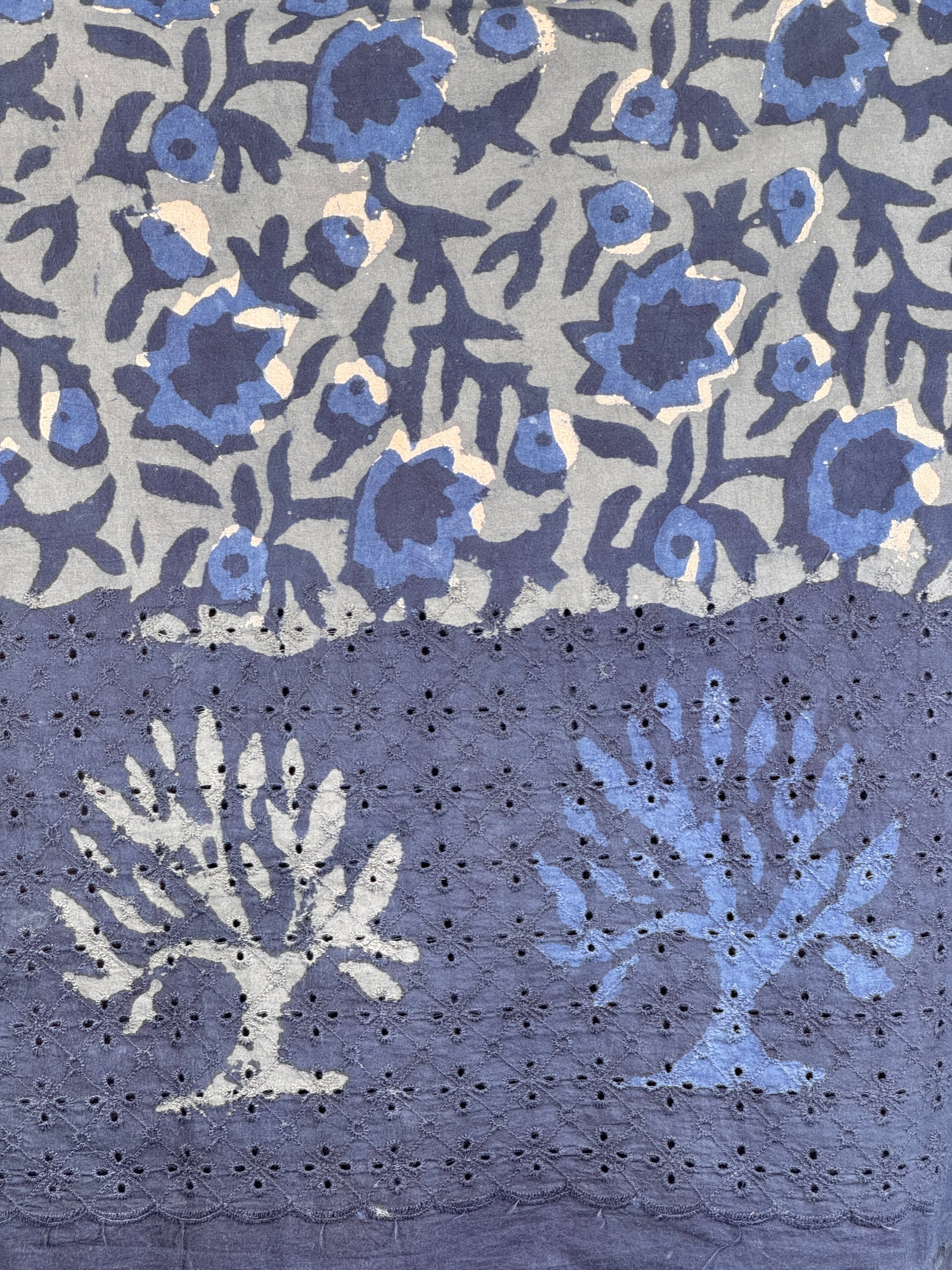 From the hands of artisans to the folds of your day — Dabu Ajrakh block print with Hakoba border, celebrating India’s living textile legacy.