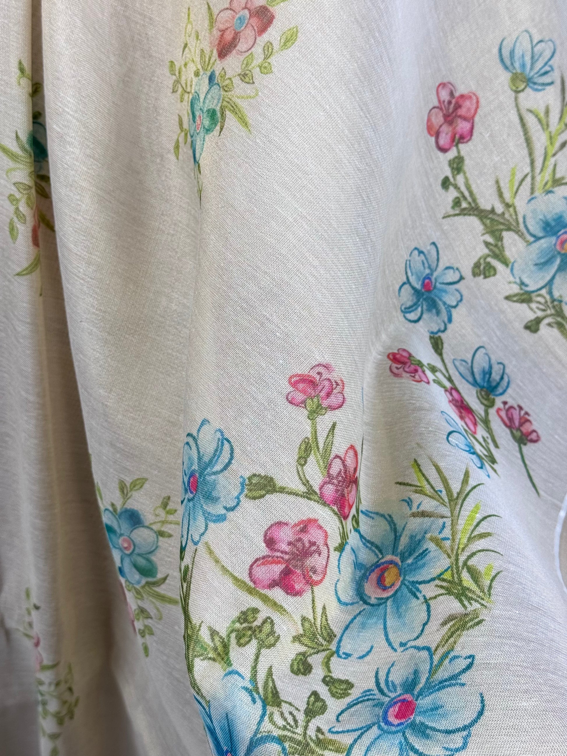 Digitally printed with the charm of hand-drawn, free-flowing florals, our airy cotton tissue fabric is finished with a muted Kasavu border that catches the light in the softest way. Graceful, breathable, and just in time for Onam festivities.
