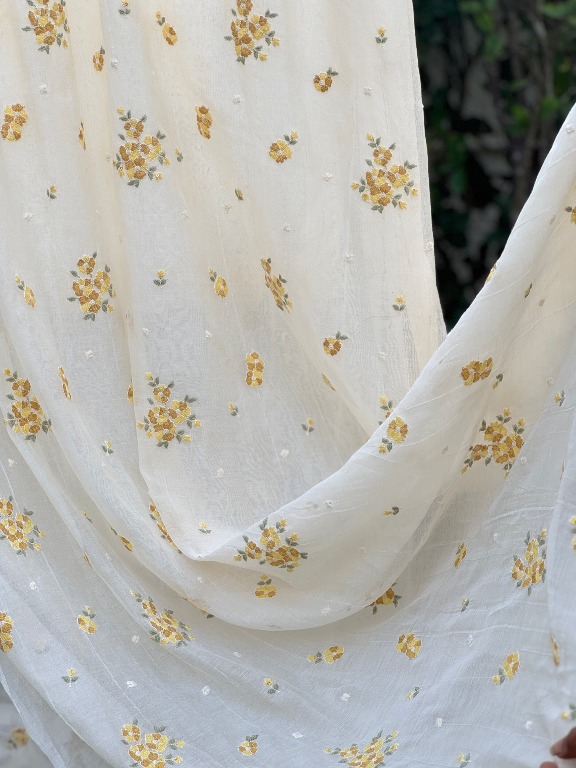 Timeless charm meets refined artistry — fine embroidery on luxuriously soft 40 gm Banarasi Chanderi.