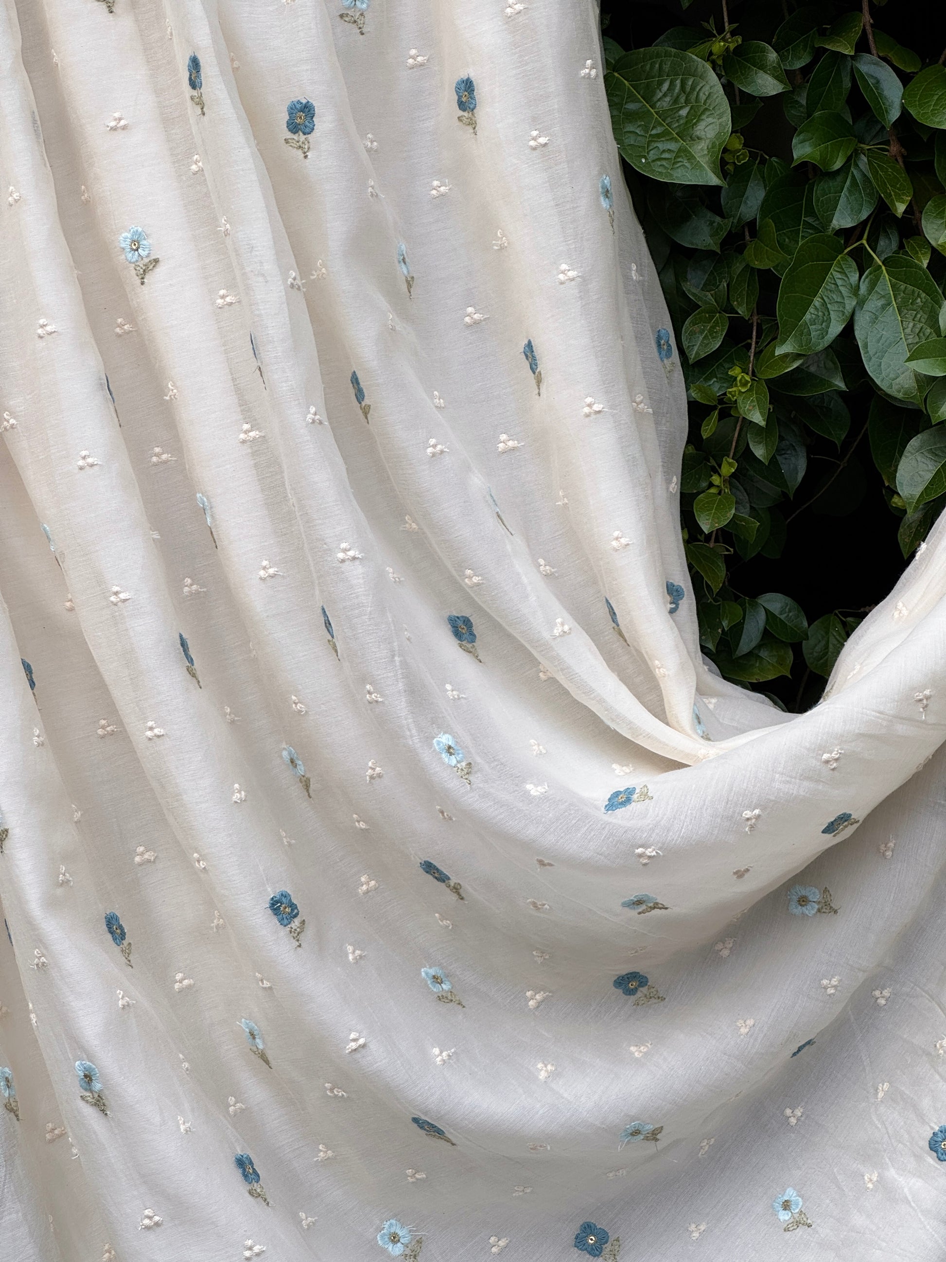 Finest Banarasi Chanderi fabrics, adorned with petite flowers—our way of weaving gratefulness into the fabric of our lives.