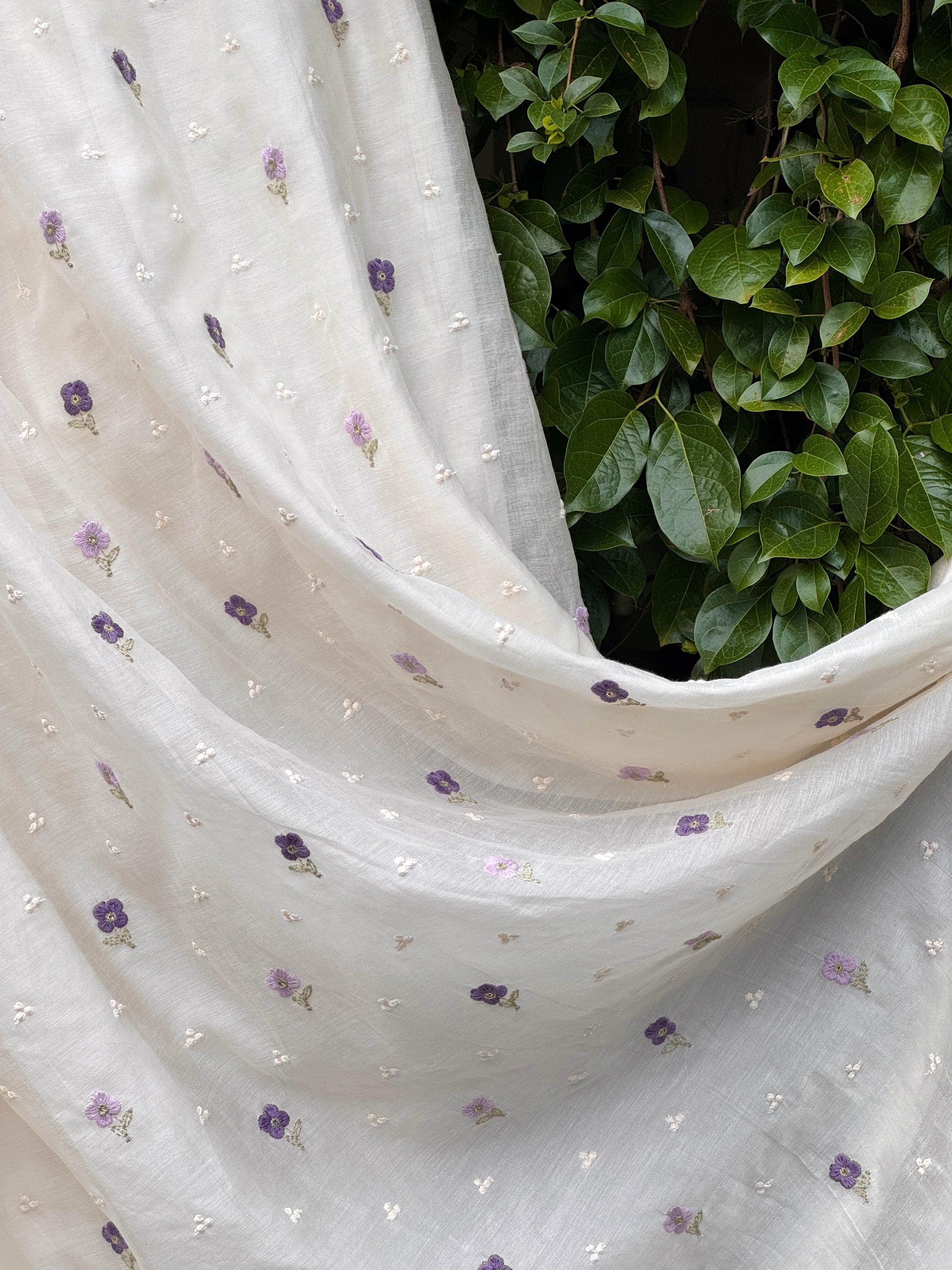 Finest Banarasi Chanderi fabrics, adorned with petite flowers—our way of weaving gratefulness into the fabric of our lives.
