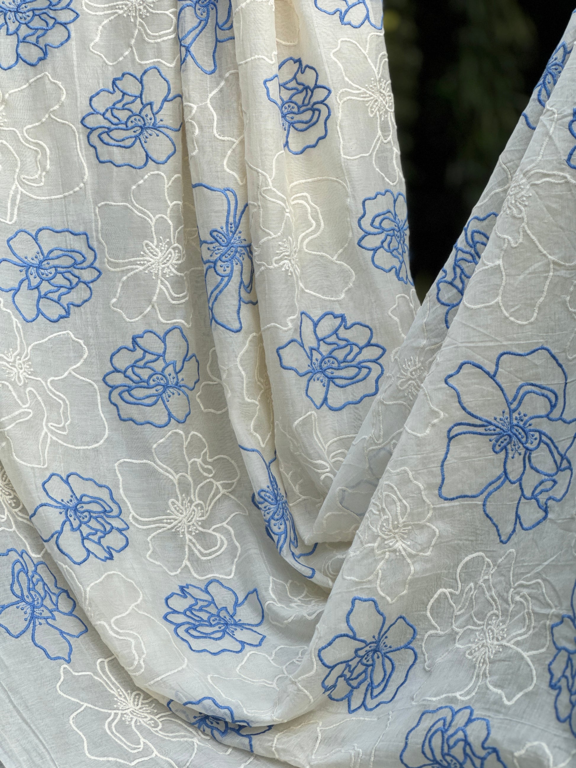 Timeless charm meets refined artistry — fine embroidery on luxuriously soft 40 gm Banarasi Chanderi.