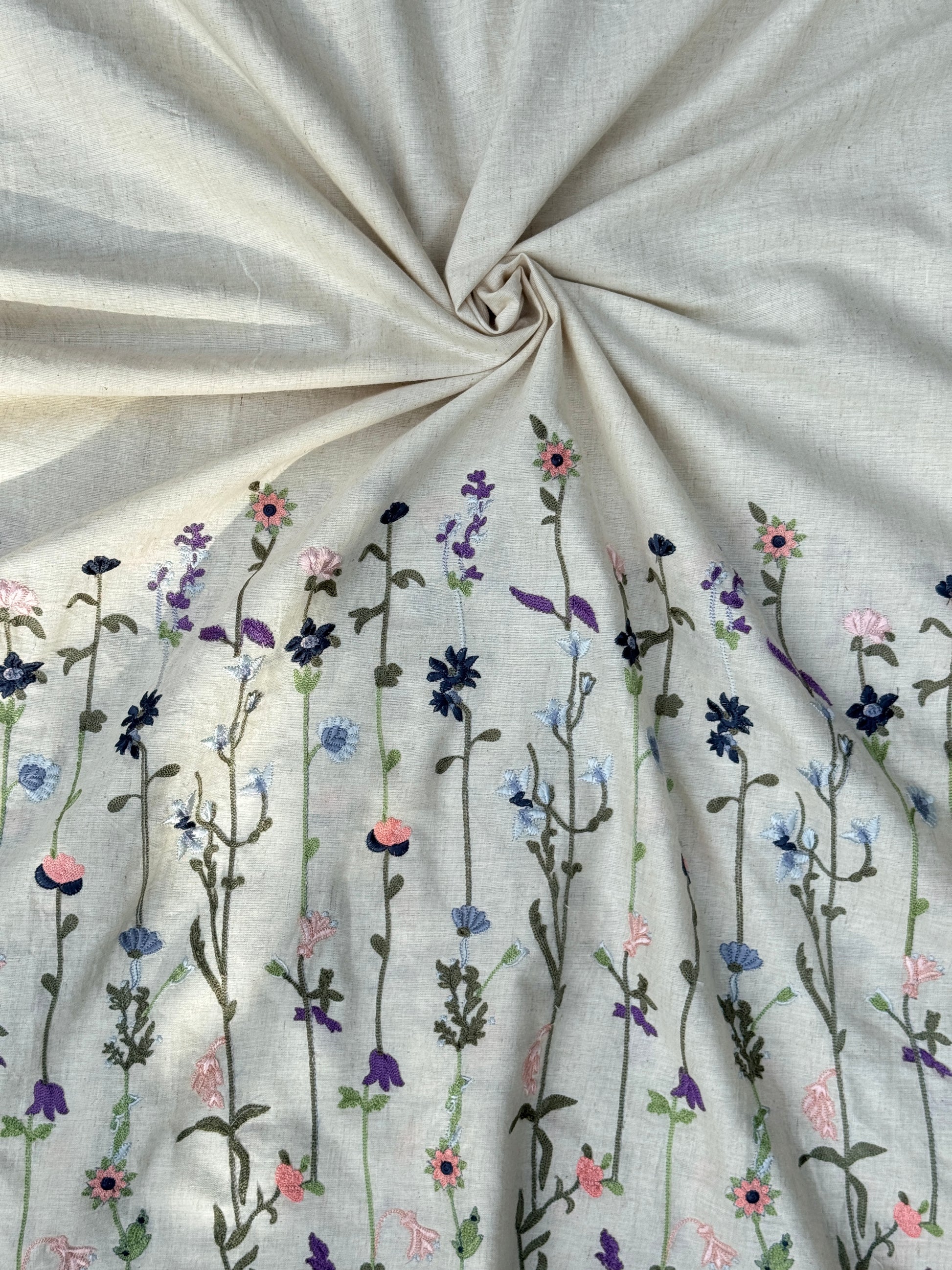 Embroidered Flax Cotton Fabric