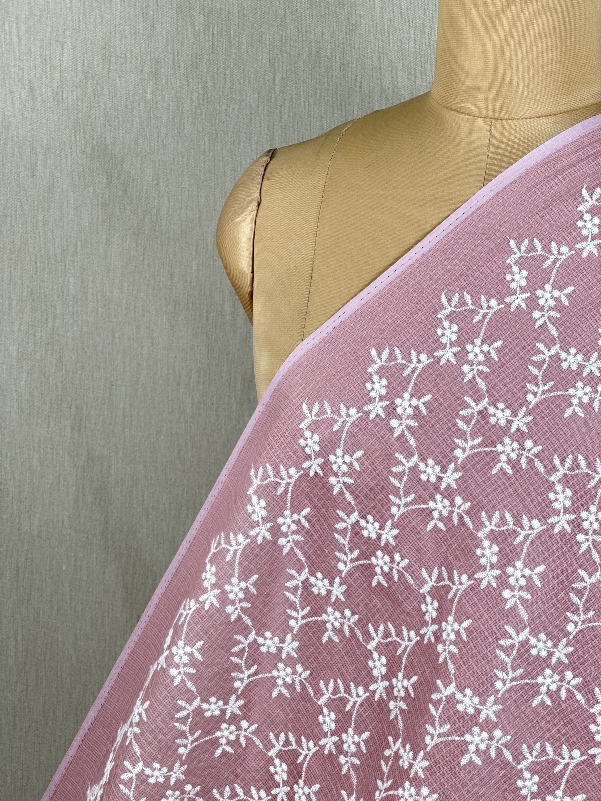 Sheer elegance in every thread — subtle embroidery on Kota fabric.
