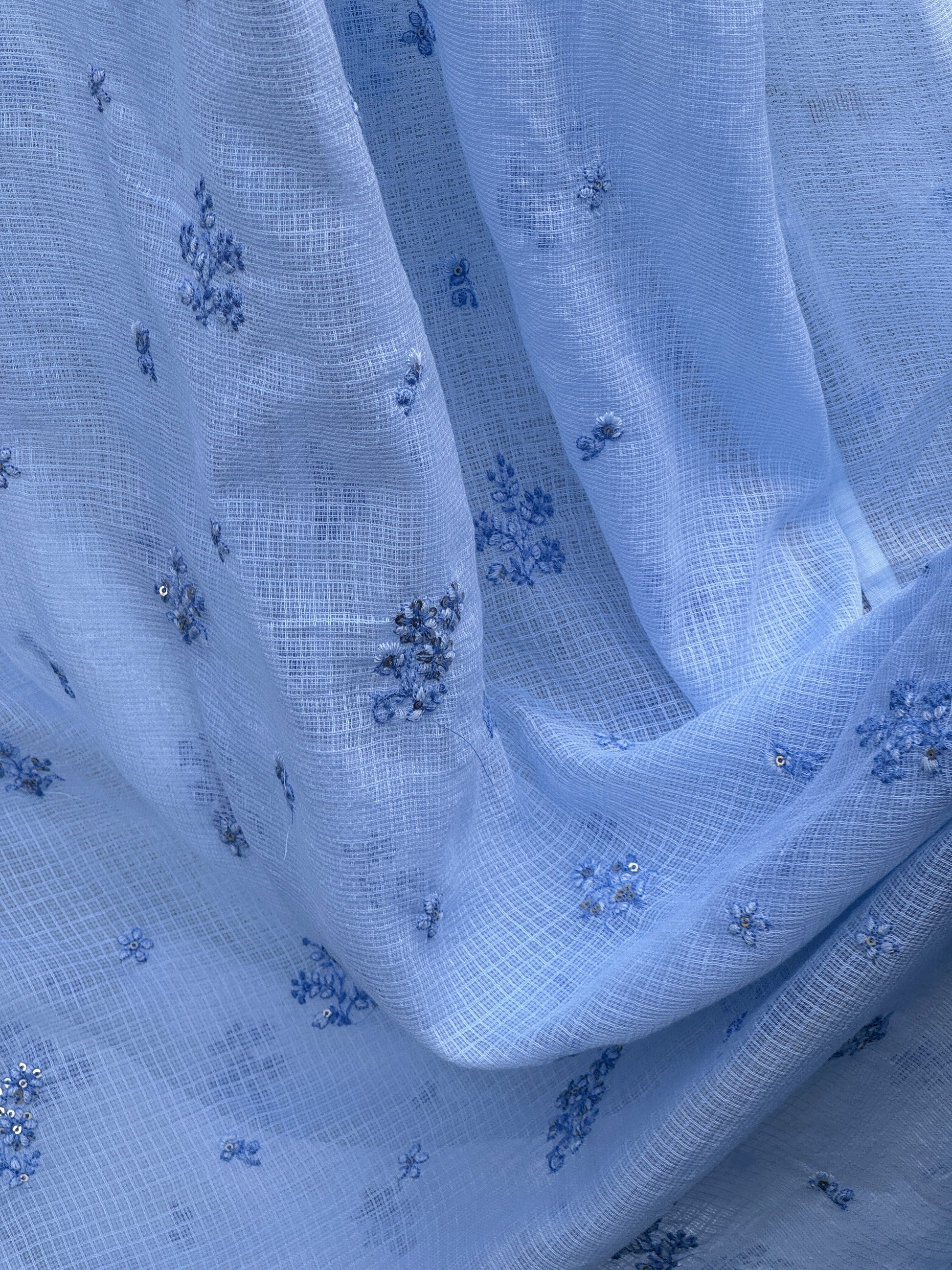 Sheer elegance in every thread — subtle embroidery on   Kota fabric.