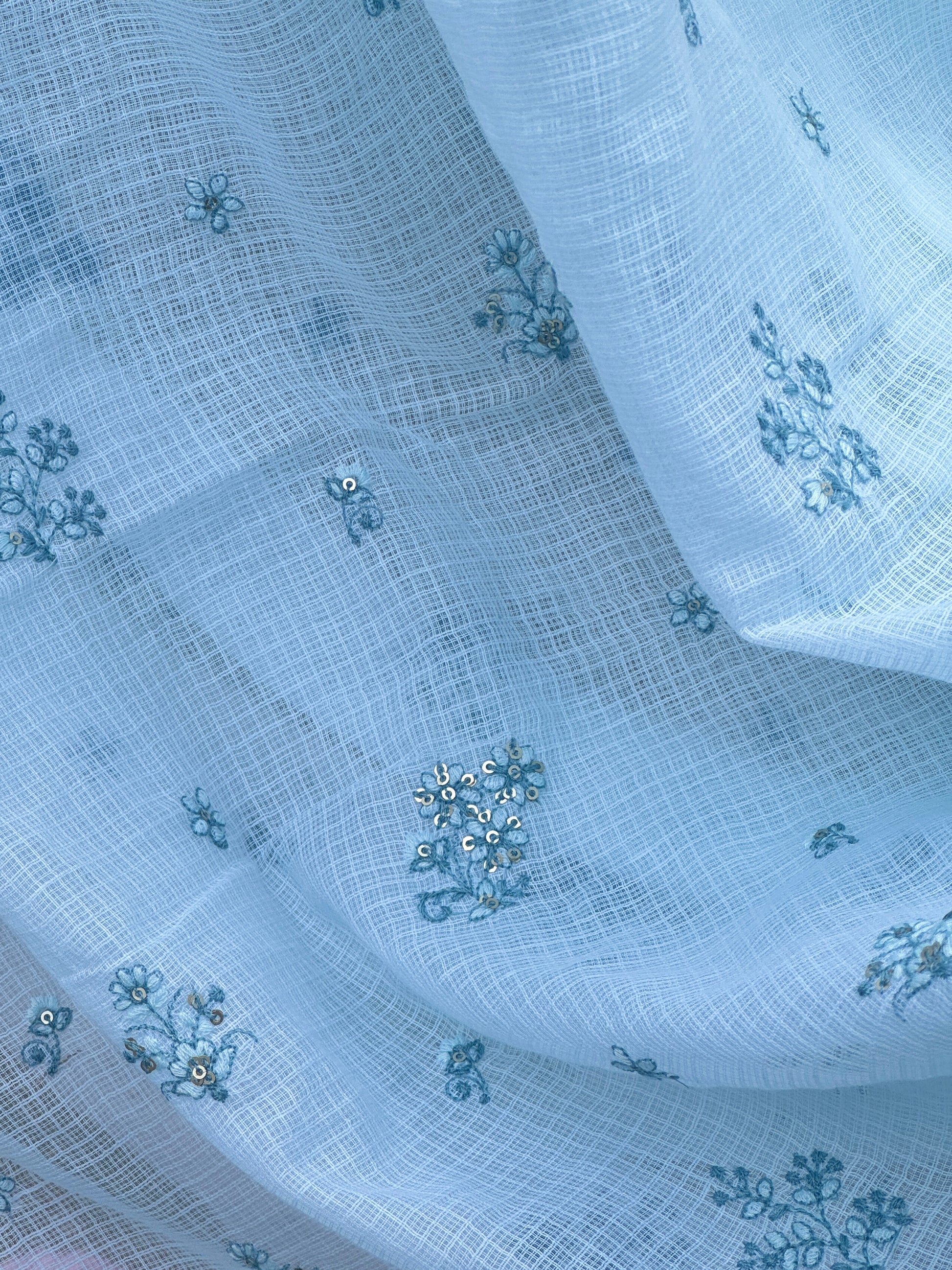 Sheer elegance in every thread — subtle embroidery on   Kota fabric.