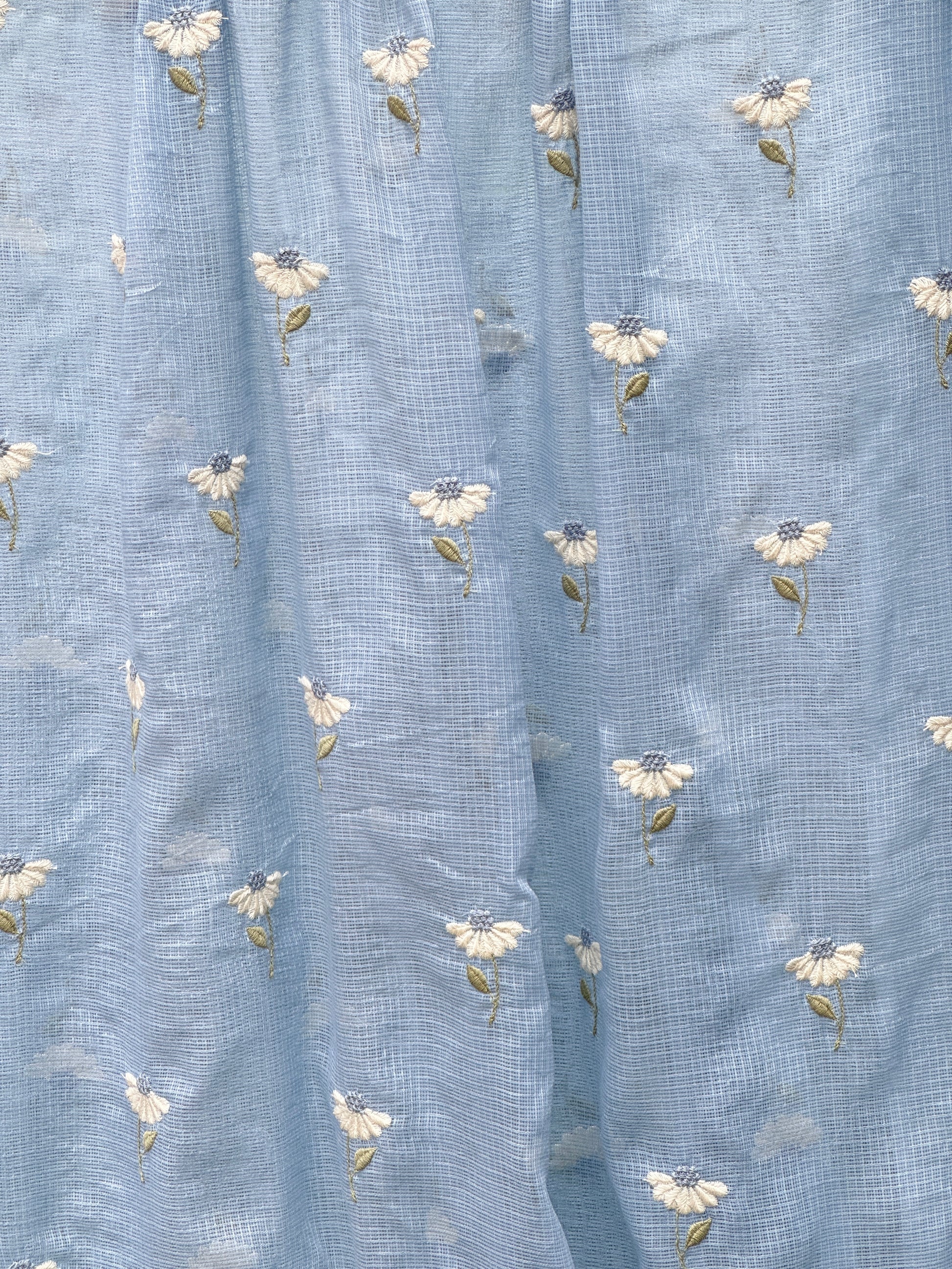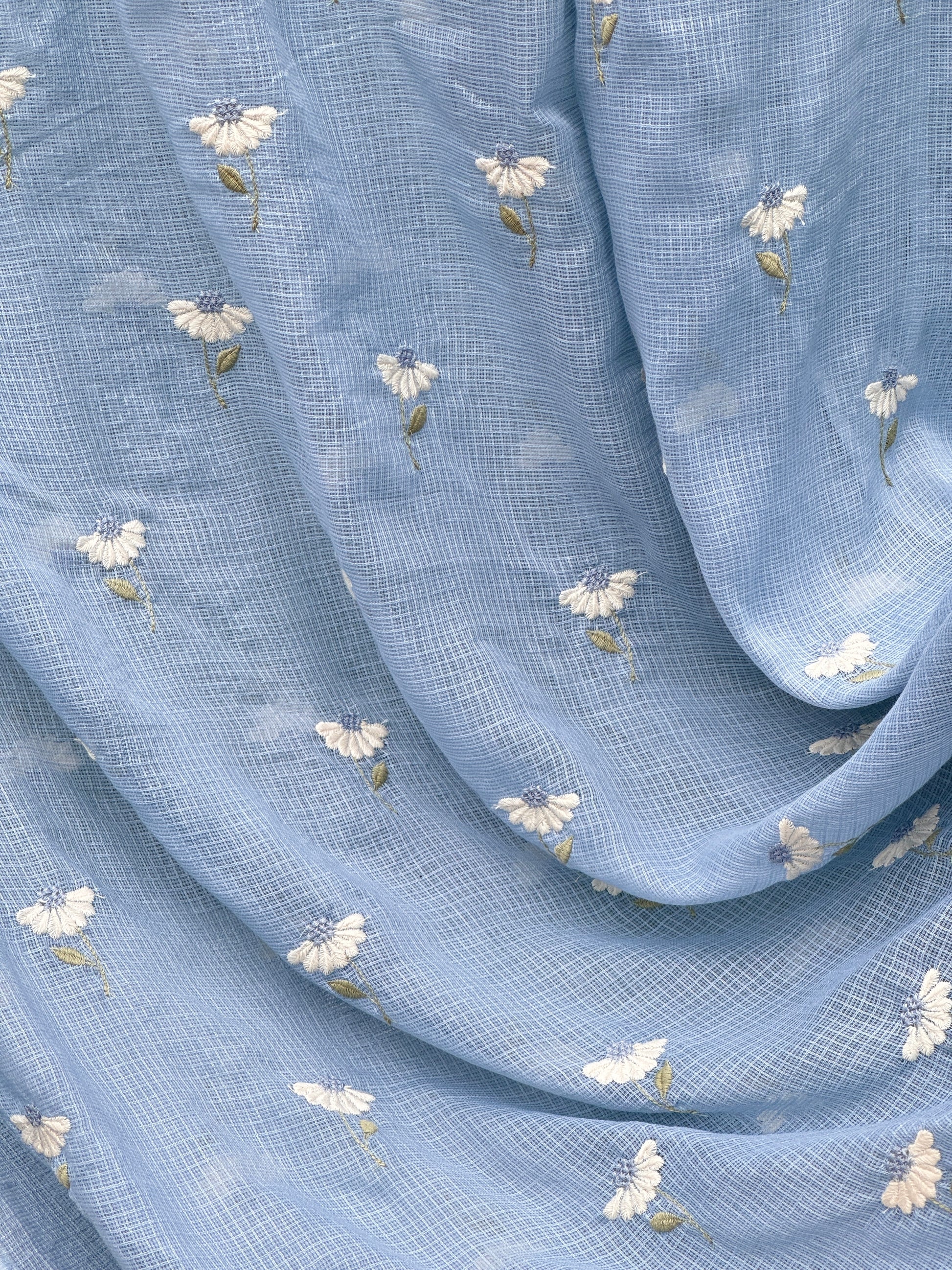 Sheer elegance in every thread — subtle embroidery on Kota fabric.