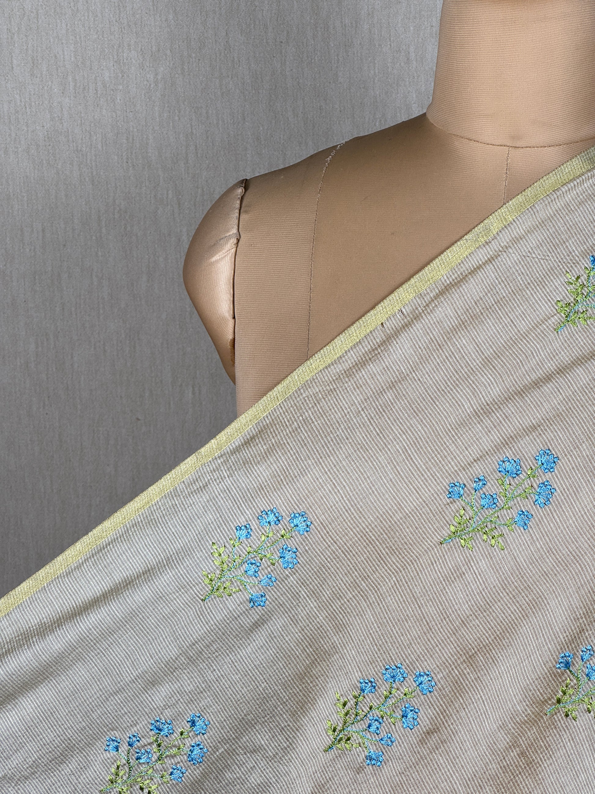 Set against a muted natural base, this linen Chandereri carries a quiet richness through delicate floral detailing and graceful texture. Refined and beautifully versatile.
