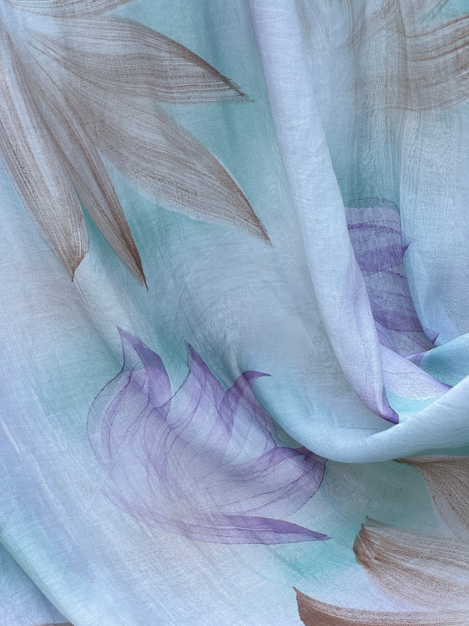 Feather–light 40gm Banarasi Chanderi, hand-painted with elegant, swooping strokes. Each brush movement reveals an artistry that flows across the fabric—fluid, expressive, graceful. A first of its kind, this fabric collection is crafted to be as rare as it is refined. Discover a fabric you won’t find elsewhere—yet.