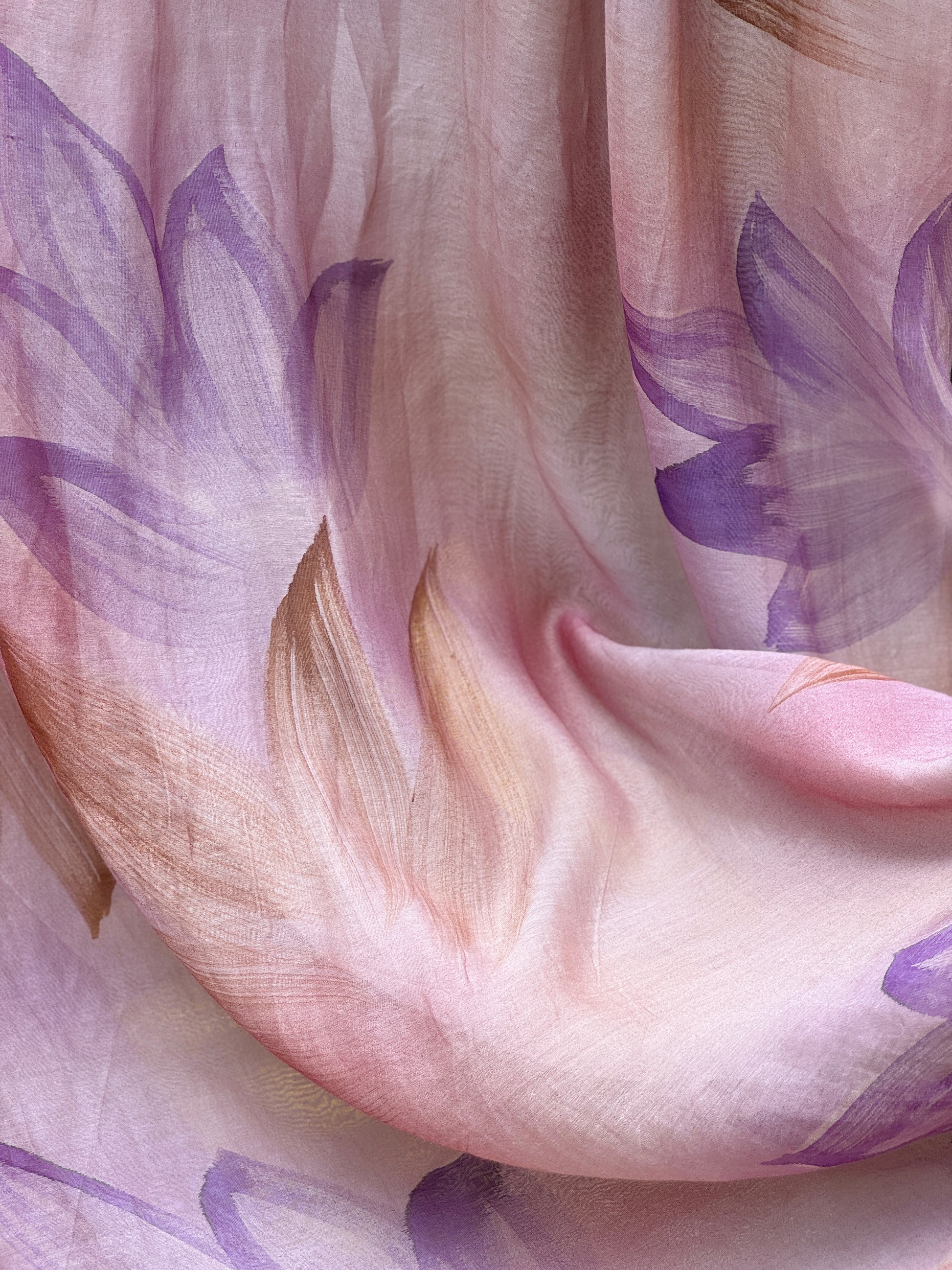 Feather–light 40gm Banarasi Chanderi, hand-painted with elegant, swooping strokes. Each brush movement reveals an artistry that flows across the fabric—fluid, expressive, graceful. A first of its kind, this fabric collection is crafted to be as rare as it is refined. Discover a fabric you won’t find elsewhere—yet.