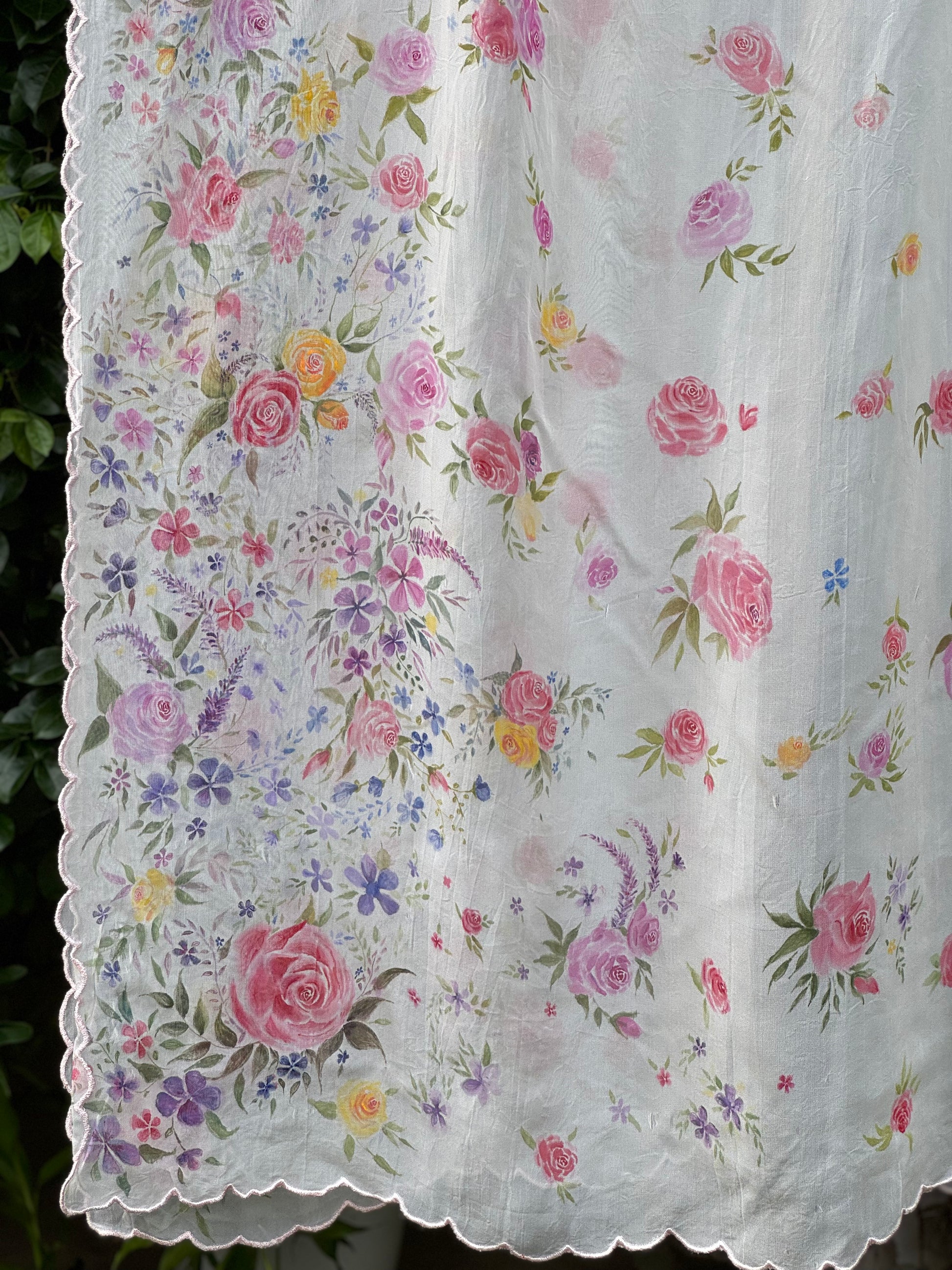 Hand-painted Organza Dupatta with scallop border.