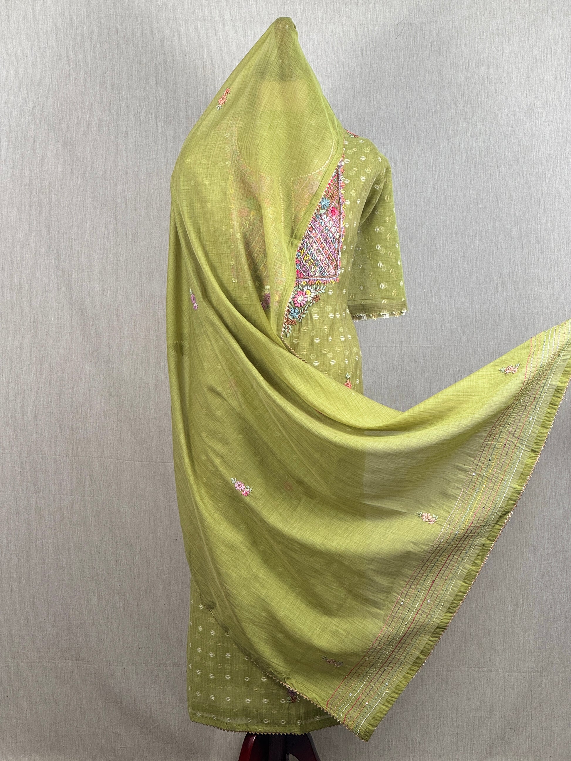 Chanderi Salwar Suit with Jamdani Weave & Hand Embroidery